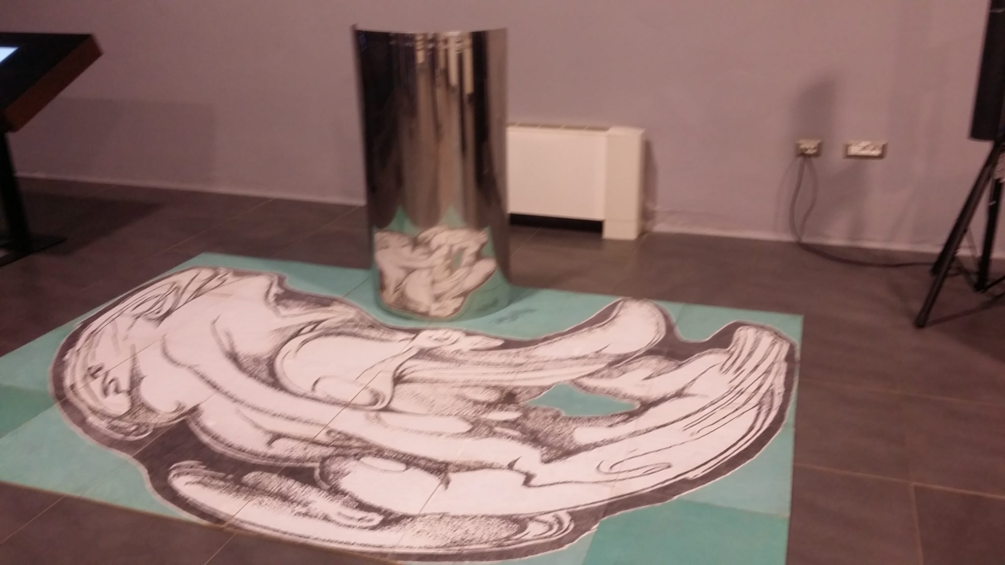 Insieme a lui in esposizione le stereoscopie su pellicola fotografica con cui, per quasi vent’anni, Alberto Magnolfi ha documentato le più importanti istallazioni artistiche nella piazza di Pietrasanta, e le tecniche pittoriche che sono alla base delle “Macchie” luminose sperimentate da Luca De Gaetani e Azzurra Casamassima.