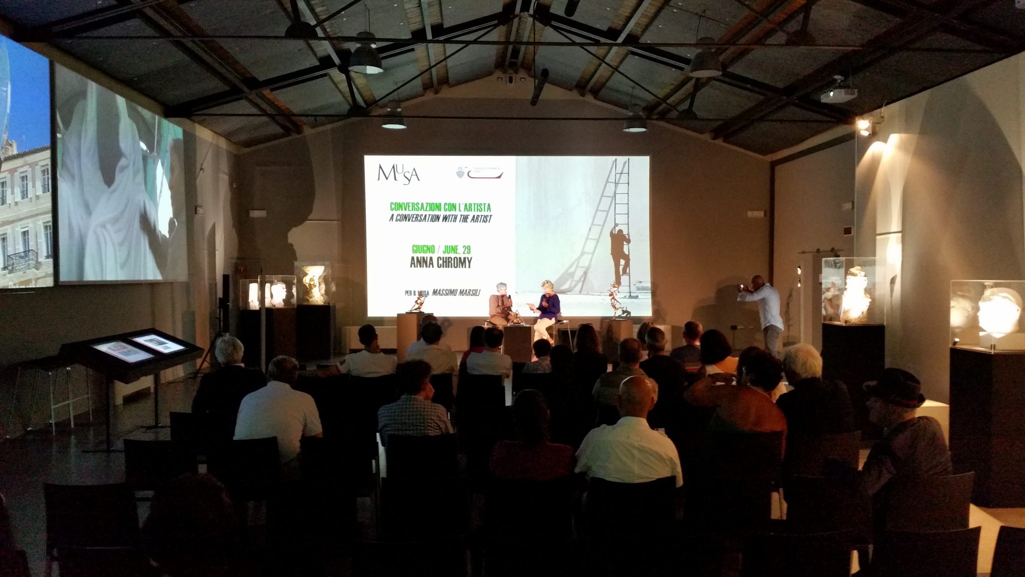 A supporto una video intervista dettagliata con regia del Consorzio CosMaVe, riprodotta sugli schermi MuSA accompagnata da tante immagini a ripercorrere gli anni lavorativi, i successi e le opere prodotte. Quando possibile una selezione di opere è esposta in sala.