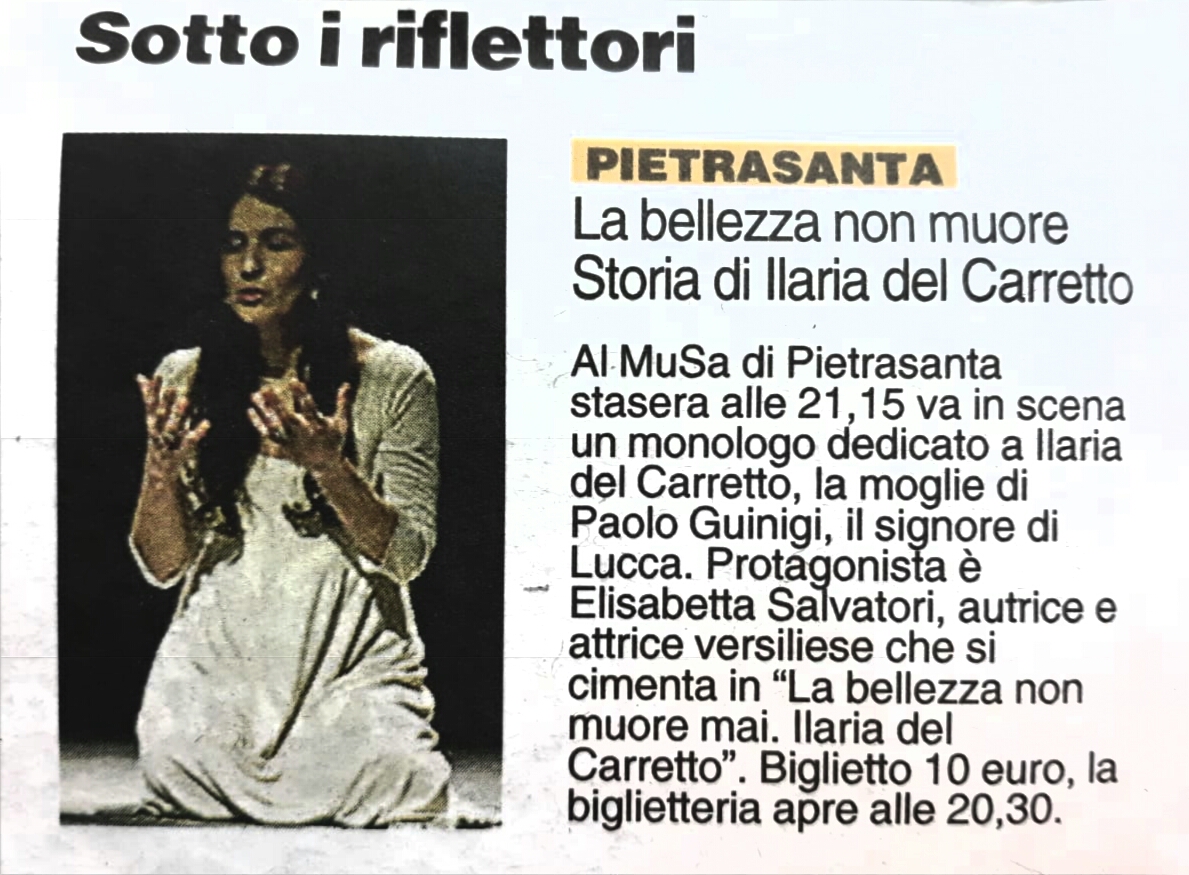 E’ un racconto che gira intorno alla vita di Ilaria del Carretto, moglie di Paolo Guinigi, signore di Lucca, conosciuta per la scultura che le fece Jacopo della Quercia.