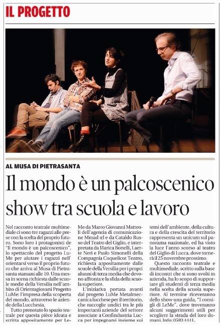 MuSA hosts the theatrical performance conceived and organized by the companies LU.ME.- Lucca metalworks for the territory in collaboration with Confindustria Lucca and Teatro del Giglio. The show is an innovative way to help third-grade students choose the high school, and is structured in 5 short shots, each of which visually tells the dilemma faced by young people: the choice of school and future education . A great metaphor for the meaning and importance of knowing how to choose consciously.