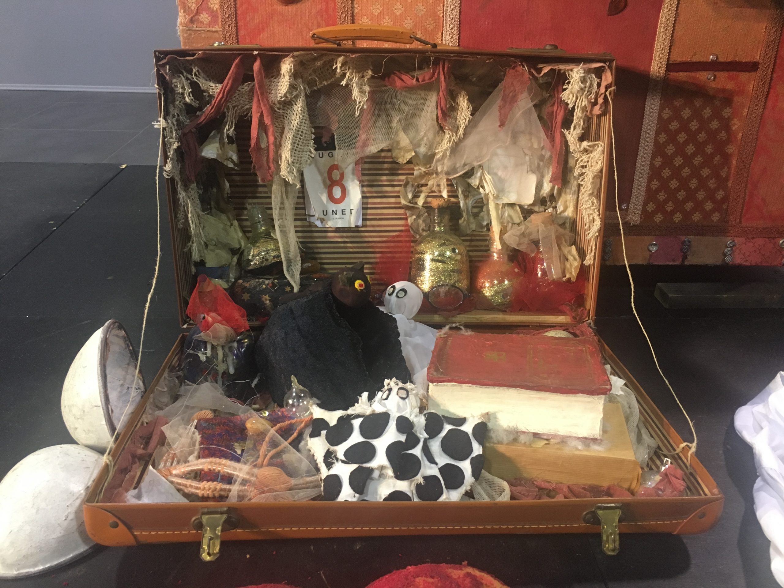 Ogni valigia è un piccolo teatrino e di valigia in valigia il palcoscenico si riempie di nuovi quadri colorati.