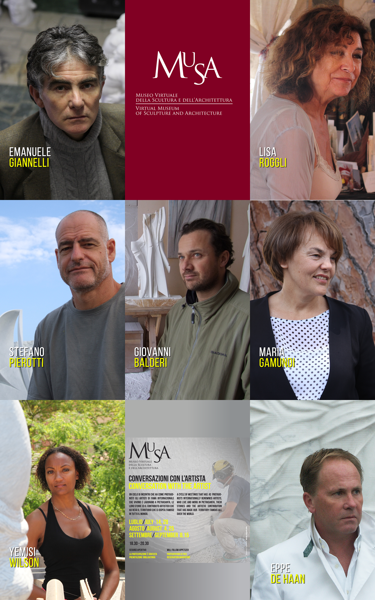A partire dal mese di luglio, per proseguire fino alla metà di settembre sono stati ospitati al MuSA importati artisti italiani e non, di fama internazionale, che con il proprio lavoro hanno contribuito a rendere Pietrasanta la perla artistica conosciuta in tutto il mondo che è oggi.