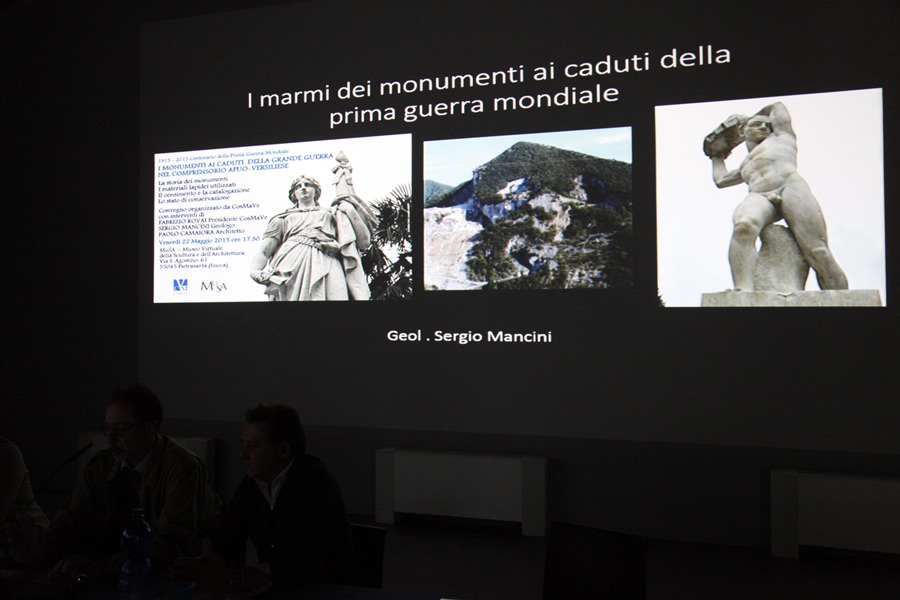 Nell’anno che celebra il Centenario della Prima Guerra Mondiale il Consorzio CosMaVe organizza al MuSA un convegno che ha l’intento di raccontare la storia dei tanti monumenti che sono dislocati nel territorio circostante. Grazie al progetto di censimento e successiva catalogazione è stato possibile approfondire la tematica relativa ai diversi materiali che sono stati utilizzati per la realizzazione dei monumenti e alle varie tipologie di marmo che sono state impiegate. Un focus specifico racconta inoltre lo stato attuale di conservazione, testimonianza della storia e dell’umanità che si è battuta con la vita in nome della fedeltà alla propria nazione.
