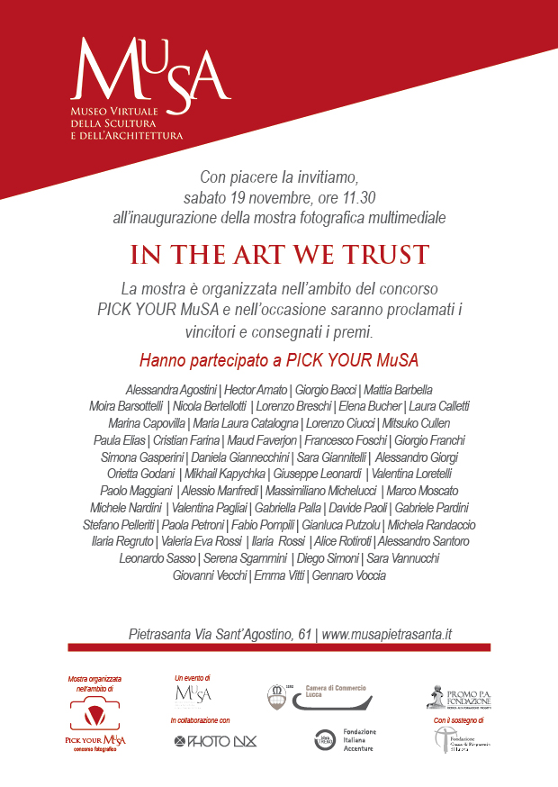 IN THE ART WE TRUST  è organizzata nell’ambito di Pick Your MuSA – concorso fotografico.
